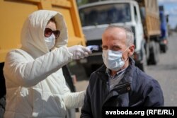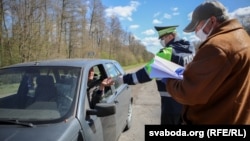 Супрацоўнікі ДАІ прыпыняюць машыны, пытаюцца пра самаадчуваньне кіроўцаў. Потым эпідэміёляг правярае тэмпэратуру і правярае, ці чалавека няма ў сьпісе тых, хто мусіць быць у самаізаляцыі.